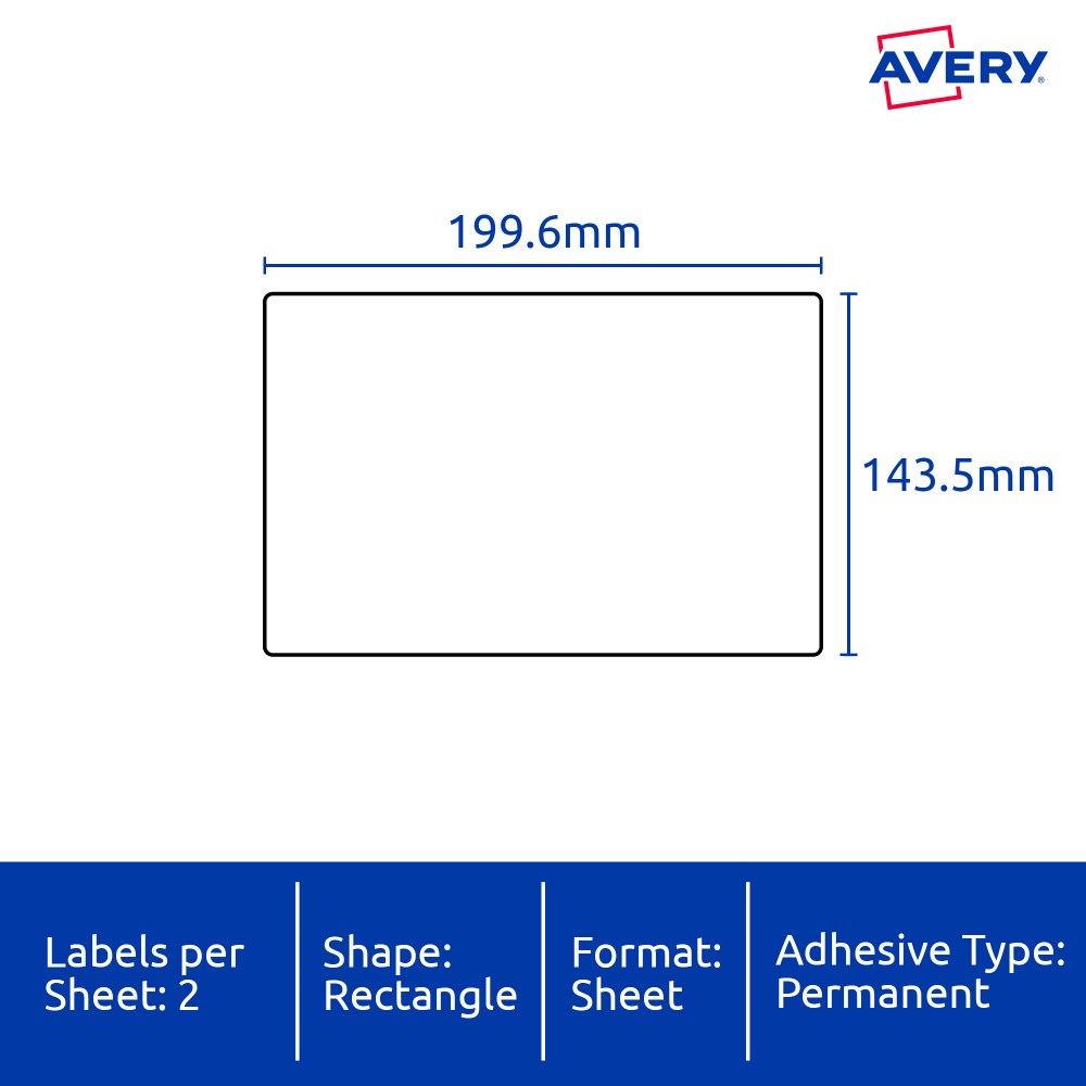 Avery Identification Laser Heavy Duty White L7068 199.6x143.5mm 2UP 50 Labels