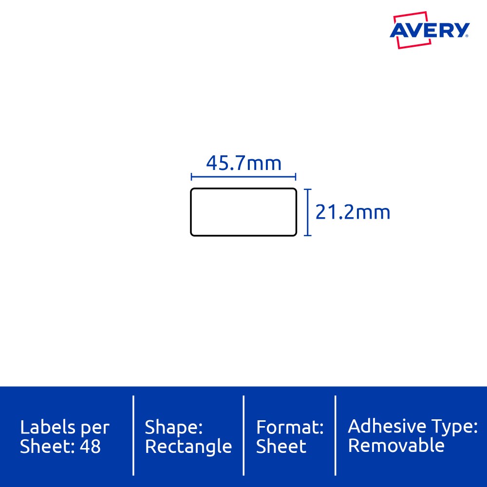 • Size: 45.7x21.2mm 960 labels, 20 sheets. 48 labels per sheet (48UP).
