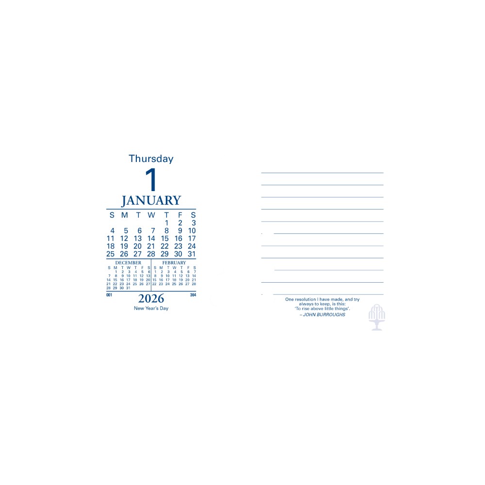 • This desk calendar refill is available in Day to a Page format.