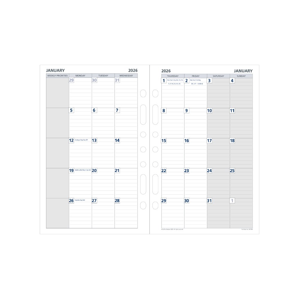 • Collins refills will fit most leading brand organisers of a smaller size.