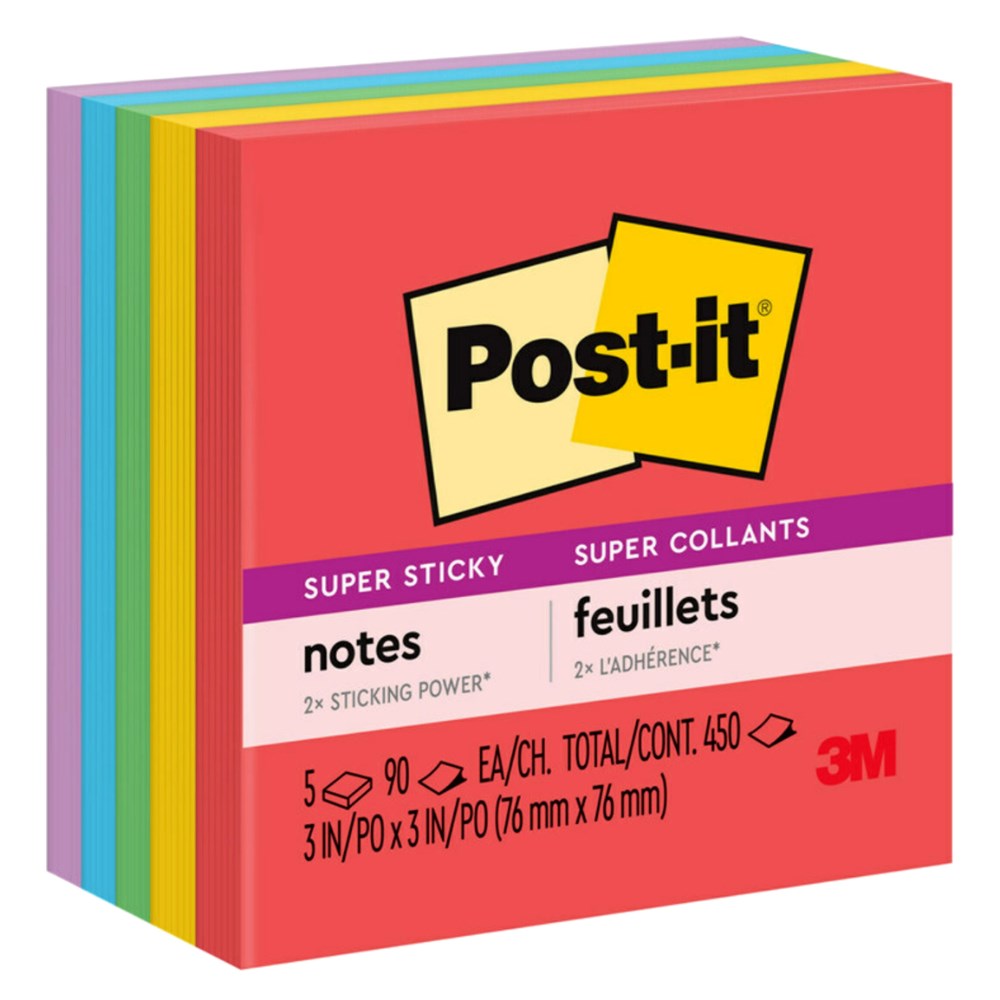 Post-It 654-5SSAN Super Sticky Notes 76mmx76mm Playful Primaries Pack of 5