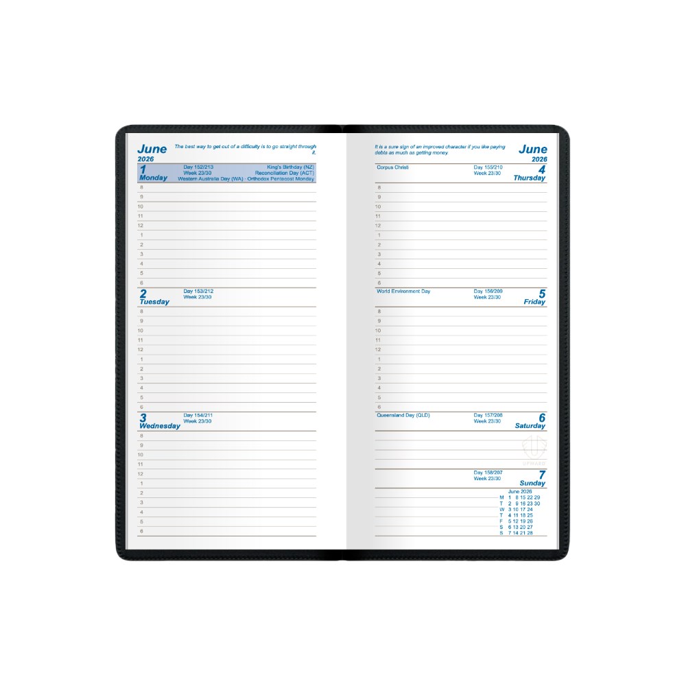 Upward Standard Pocket Diary A6/7 Week To View Black
