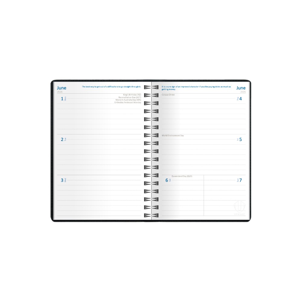 Upward Superior Diary B6 Week To View Black
